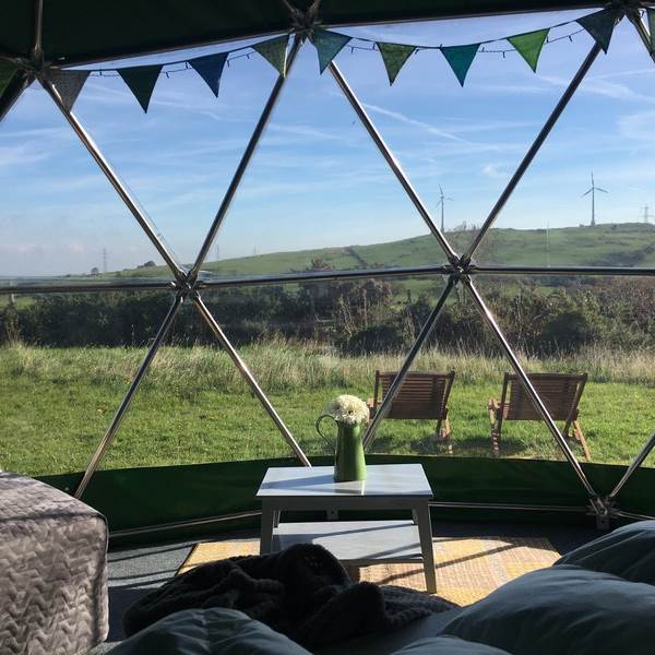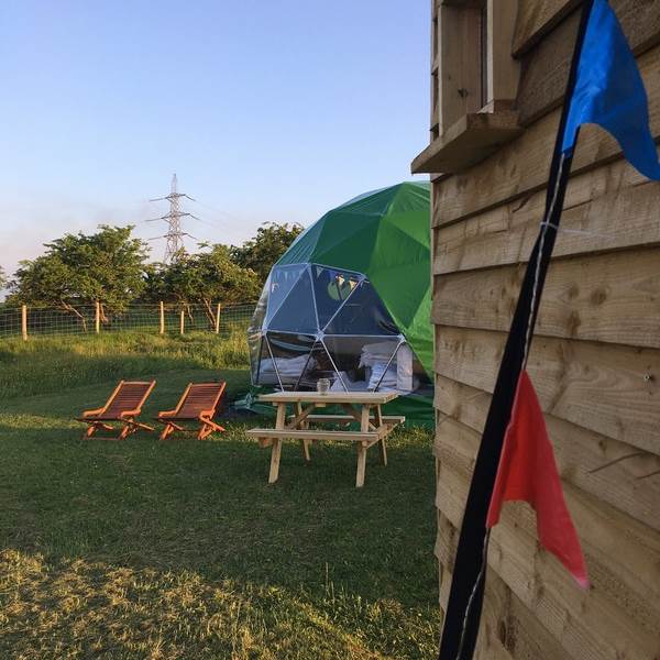 Enjoy the views of the rolling countryside, sunsets and the stars in the night sky all from inside the cosy dome through its panoramic windows. Snuggle up next to the log fire and enjoy its warm glow or take in the fresh air outside next to the dome side campfire.