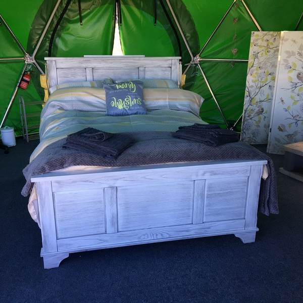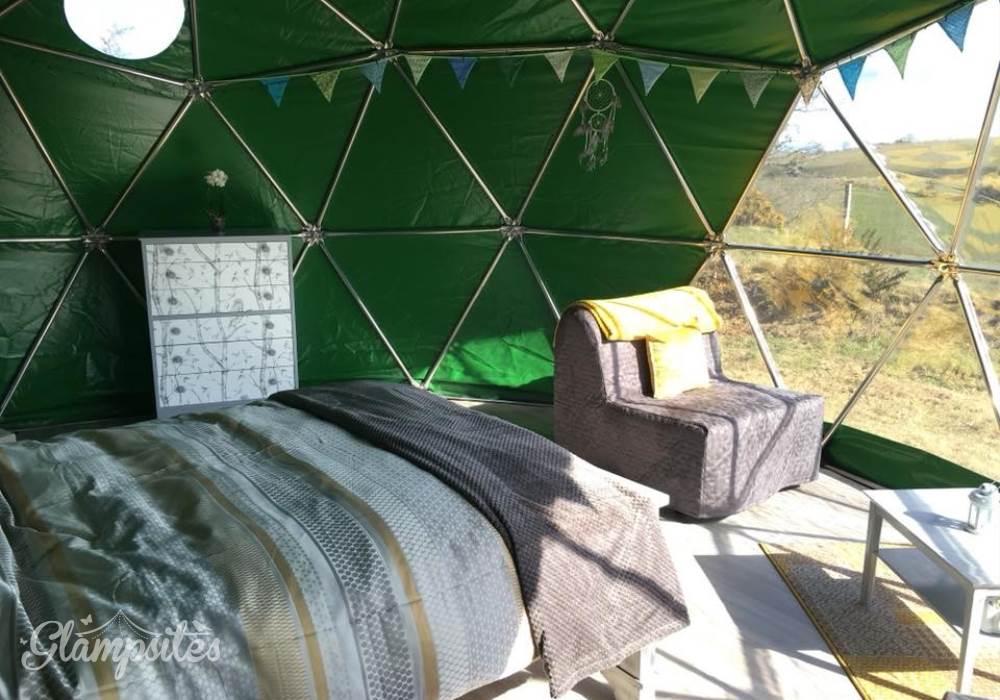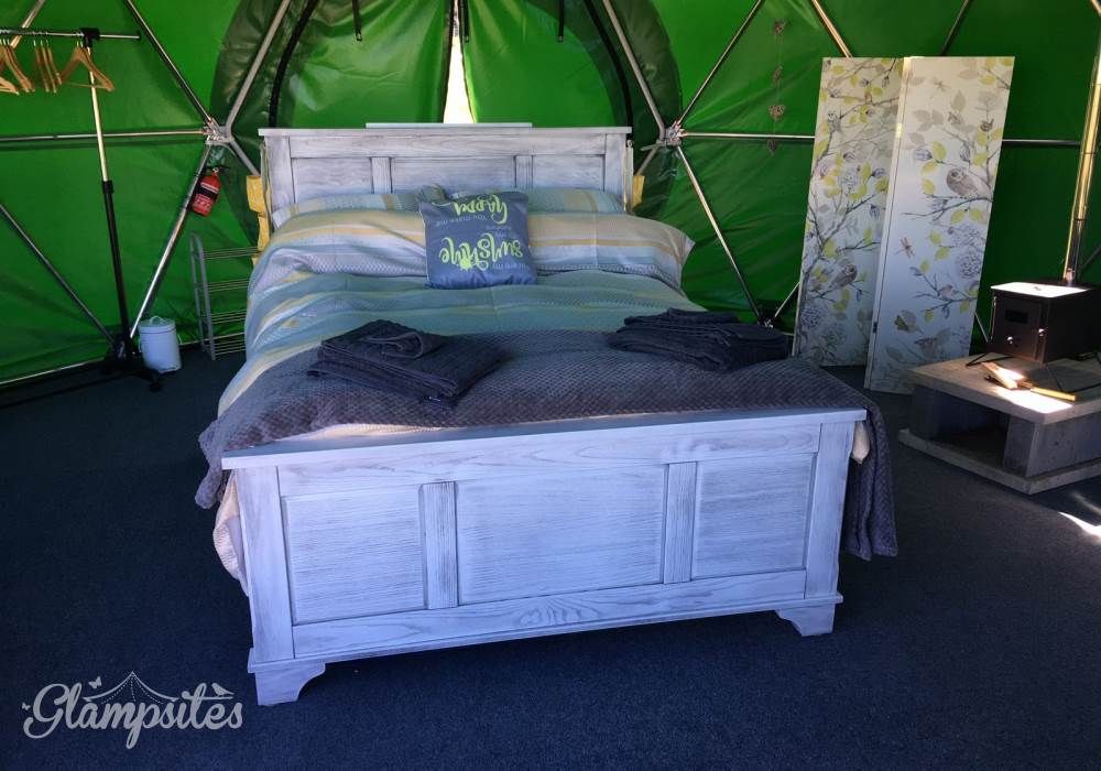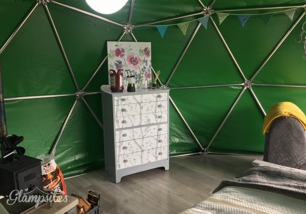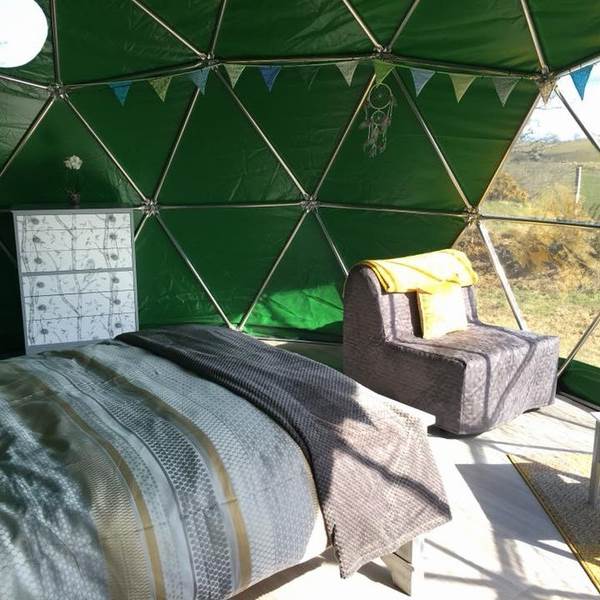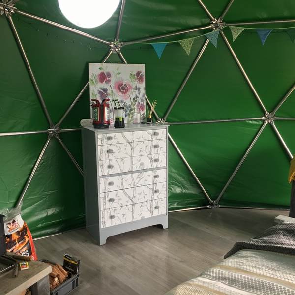 When you step into either of our two domes you will be greeted by a sense of space with its tall ceiling and 5.8m diameter. Comfortably and charmingly furnished to sleep up to 4 people.