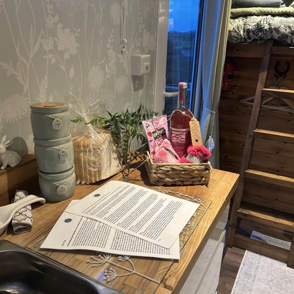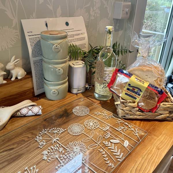 Fern has a fitted kitchen with a oven, cooker, fridge and all the usual equipment needed. We also provide tea, coffee, sugar, salt, pepper and oil.