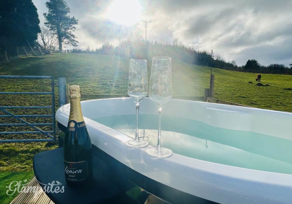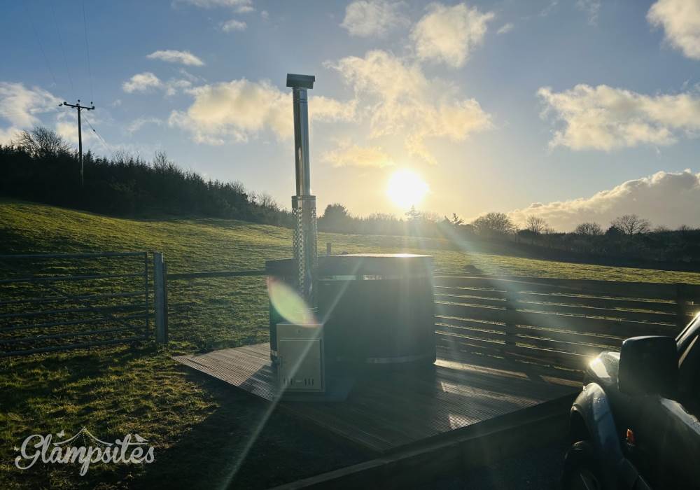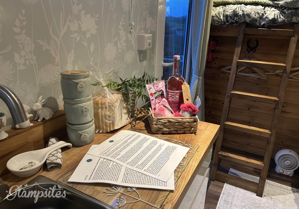 Fern is our lovingly converted 1994 Volkswagen horsebox with a private hot tub, set away from our main glampsite. She has her own gated entrance with a parking area, garden and decking over looking the alpaca paddock and mountains.
