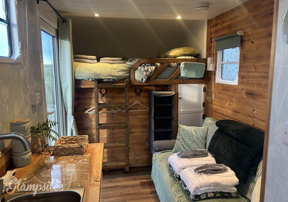 Fern is for adults only and can sleep 2 people either both in the double bed above the cab or in the small double sofa bed. *Please take a look at the ladder access to the bed*