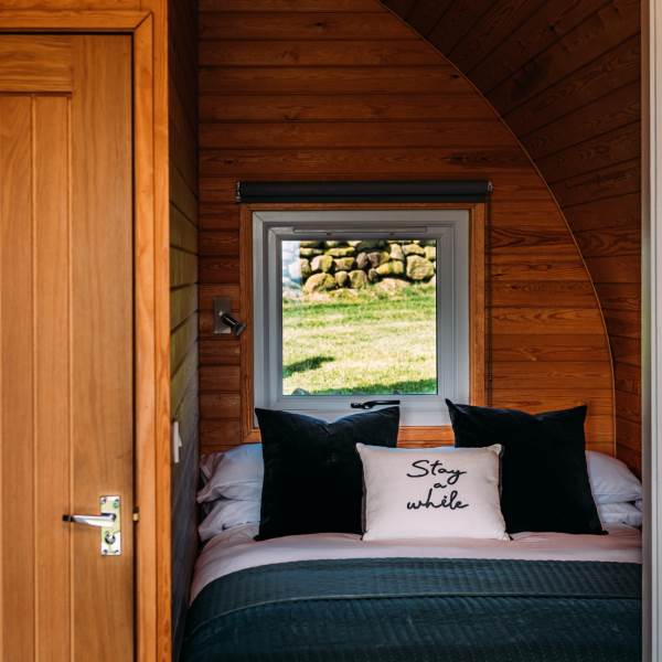 Lie back and relax in your hot tub, warming ready for your arrival and the perfect temperature for your whole stay. Choose this special pod and enjoy luxury bedding, fluffy towels and cute coffee machine.
