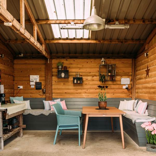 Your pod has a Smart TV, panel heater, lighting, power and USB sockets, Wi-Fi, double glazing, curtains, blackout blind, hair dryer and smoke alarm. Outside there's a deck with sheltered patio to the side with wonderful views, hot tub with jets and LED lights, cocoon swing seat, cast iron fire bowl for use as a fire pit or barbecue, dining table and chairs, plus two string chairs.