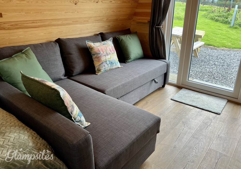 Ideal for a family getaway, the Howgill Glamping Pod comfortably sleeps 2 adults and 2 children with a cosy double bed and a pull-out sofa bed. Inside, you’ll find a compact kitchen equipped with everything you need for light meals including fridge with freezer box, microwave, air fryer, toaster, kettle, cutlery, utensils, a separate shower room, and all the comforts of home including a TV, WiFi, underfloor heating, USB charging points, Smart TV. All bedding and towels are provided.