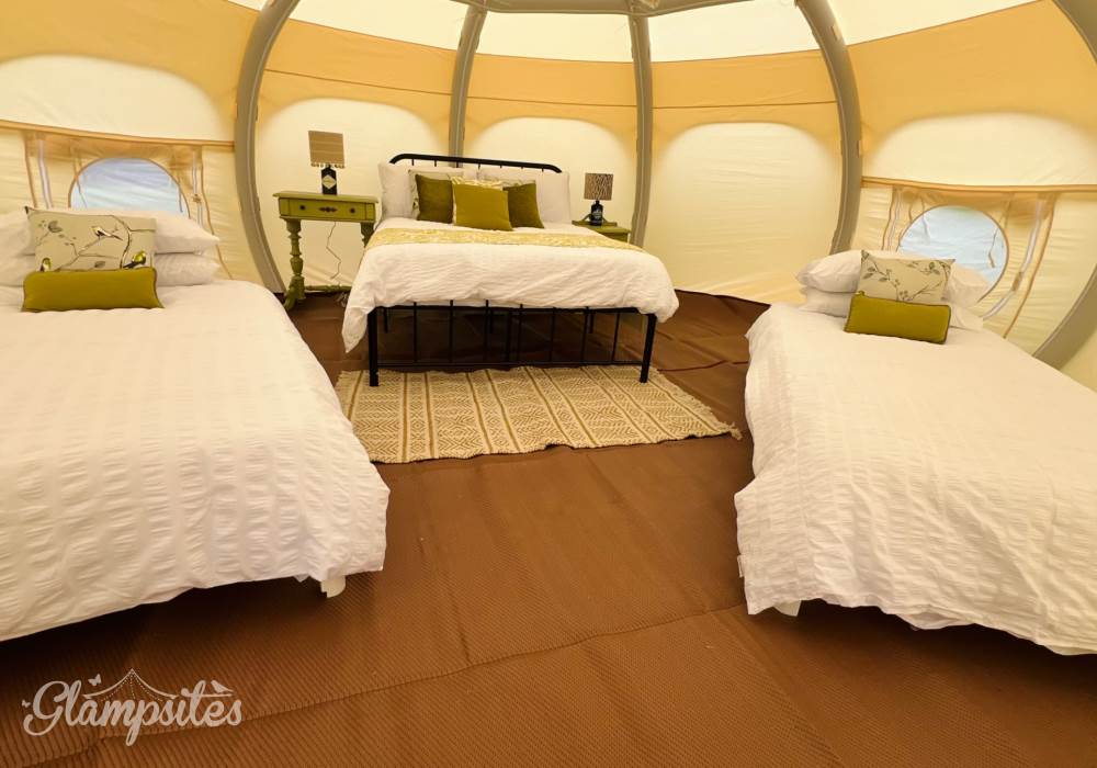 These incredible bell tents comes from Lotus Belle. An absolute game-changer in bell tent design these are higher sided, giving a much more spacious interior for you to relax and enjoy.