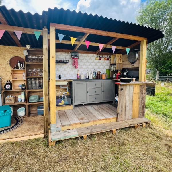 Provided is an outdoor kitchen with fridge to keep your essentials fresh (& your wine chilled too obviously) and an outside & undercover dining area as well as on site toilets & hot showers with fluffy towels and complimentary green toiletries. We’re pet friendly too!