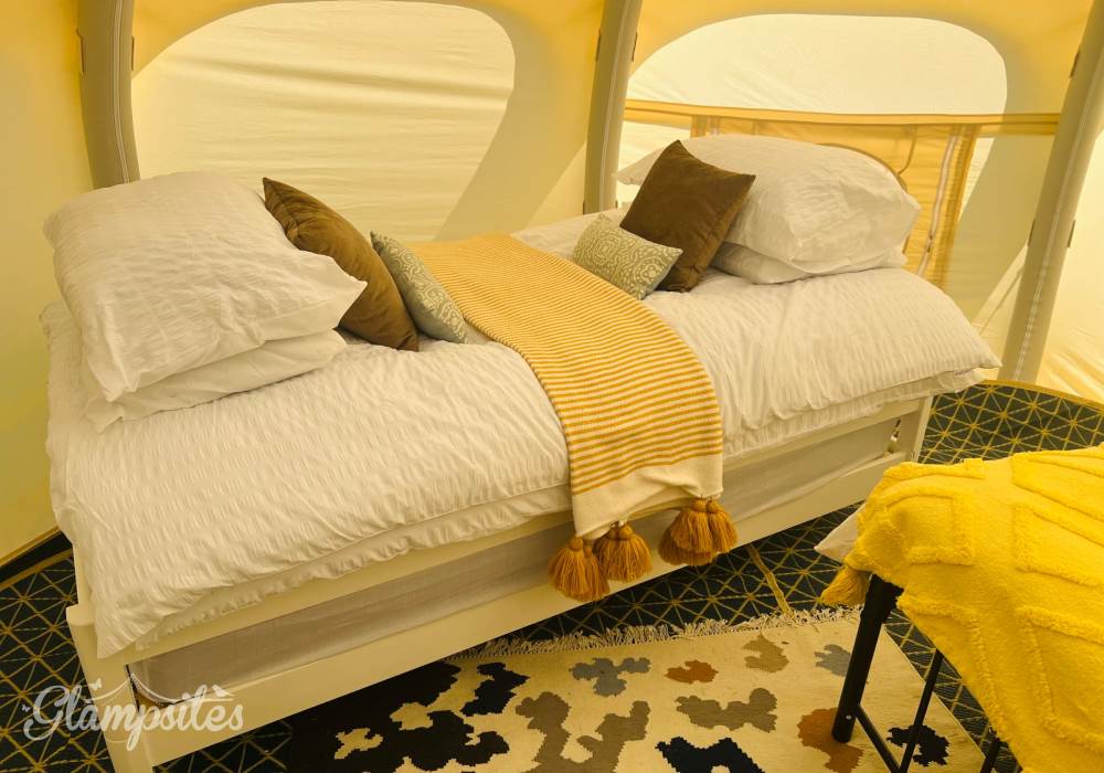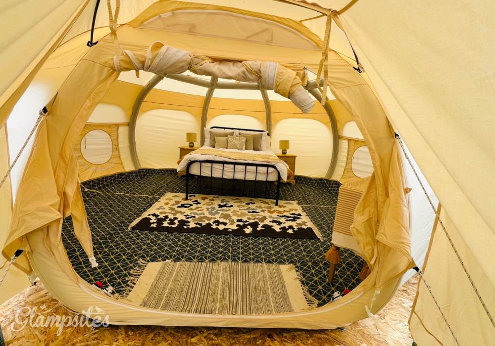 These incredible bell tents comes from Lotus Belle. An absolute game-changer in bell tent design these are higher sided, giving a much more spacious interior for you to relax and enjoy.
