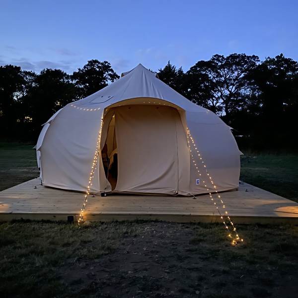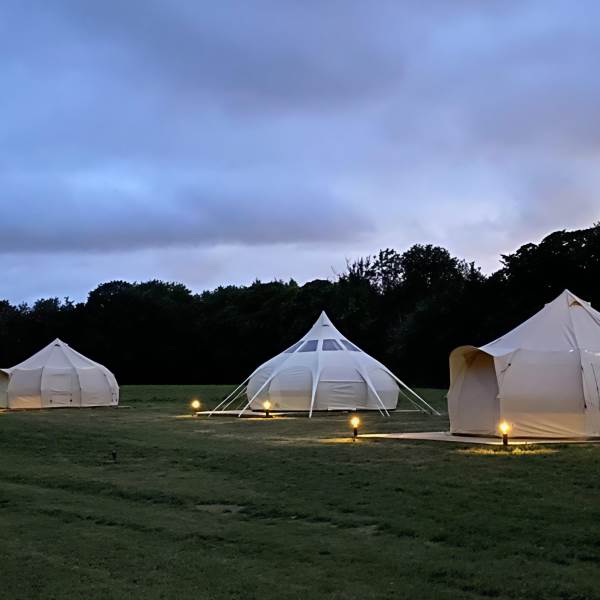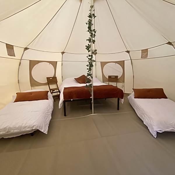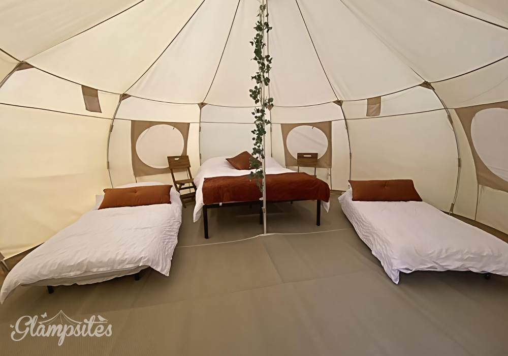 For those who love a little extra breathing room, our Nova Tent features higher sides and an airy, open feel that makes the space beautifully comfortable for families or small groups. The tent comfortably sleeps up to four guests, with the option to accommodate an additional child using your own airbed or travel cot.