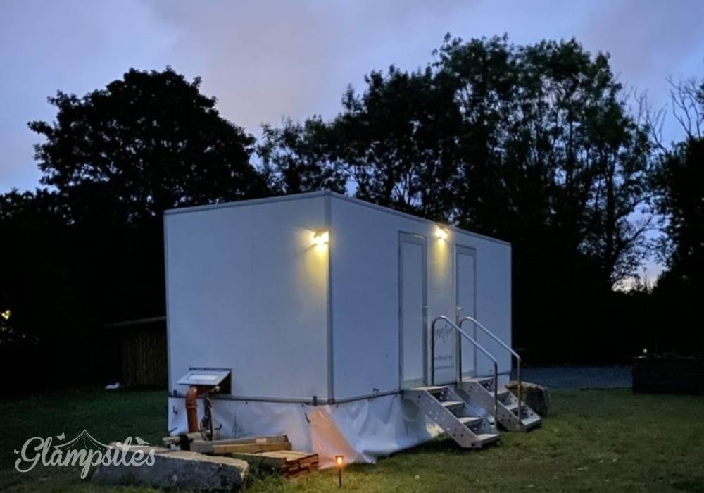 Outside, your own picnic table and fire pit area await. Glamping guests have access to our shared facilities including toilets, hot shower, wash-up area, and a communal kitchen with microwave, kettle, and toaster. There is no electric in the tent as Star is fully off-grid.