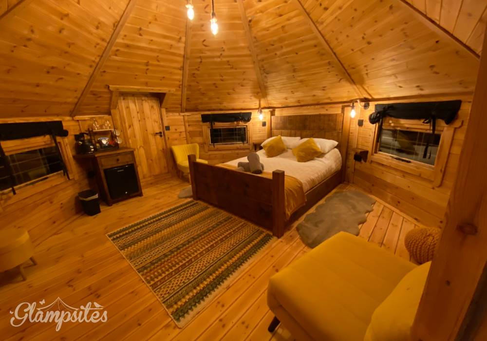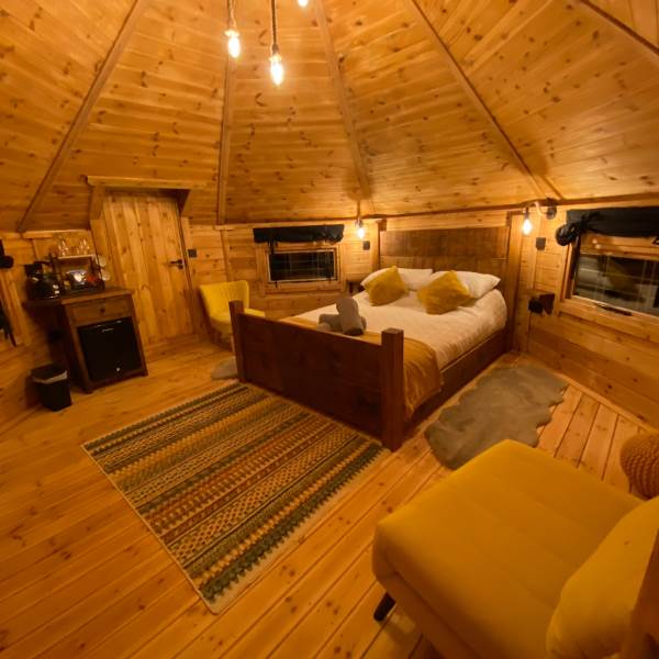 Step through the solid wooden door into a warm, inviting interior designed to feel snug and comforting year-round. Natural timber features and soft lighting create a cosy atmosphere, while the thoughtful layout ensures both comfort and practicality. The interior has been carefully styled to complement the cabin’s rustic exterior, offering a calm and relaxing environment to retreat to after a day exploring the countryside. Every detail has been considered to make the space feel welcoming, private, and effortlessly comfortable.