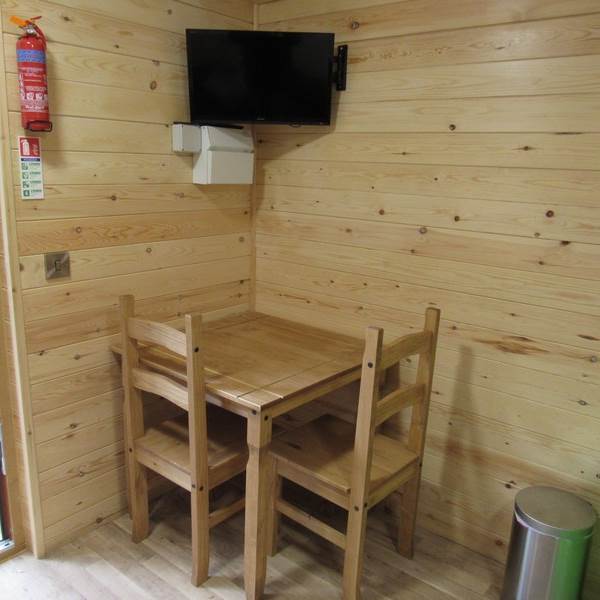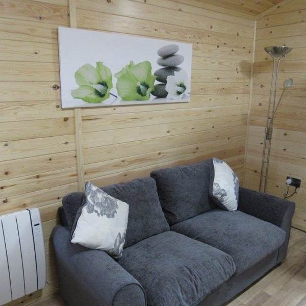 The lodges come complete with TV/ Freeview / DVD/ Microwave Oven / Hot plates / Kettle / Fridge / Freezer/toaster and sink with hot and cold water. There are plates, side plates, mugs and bowls plus cutlery for 4 people. The kitchen area has a dining table with four stools. Each room has a fixed double bed and a pull-out double bed sized sofa bed. Bedding (double bed sets) and towels - one bath and hand towel per person is provided. There is a bathroom with toilet, hand basin, shower and a mirror with a shaver point. There is outdoor furniture on the decking/veranda area too.
