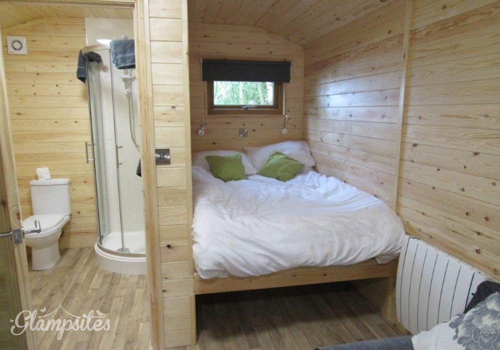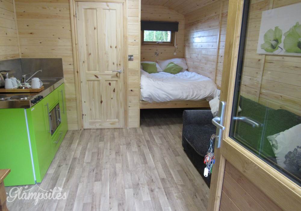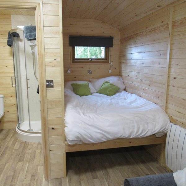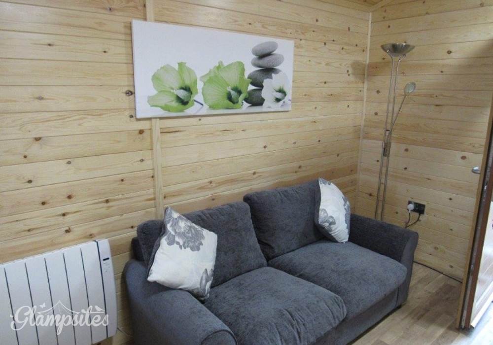 Our Glamping lodges in the Peak District are 18.36 sq metres and sleep up to 4 people, in a double bed and a double sized sofa bed. Our lodges are called Chestnut, Silver Birch, Holly, Pine, Hawthorn and Oak. Oak is our pet friendly lodge.
