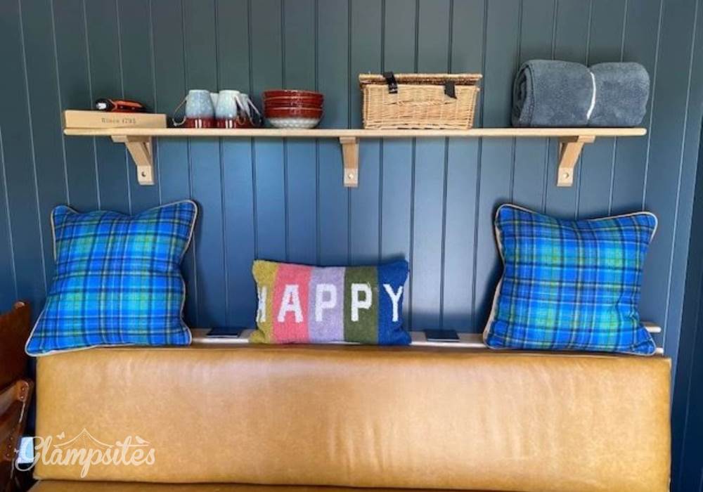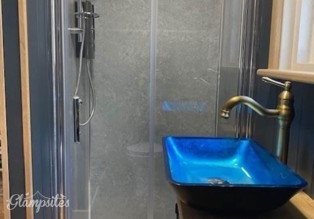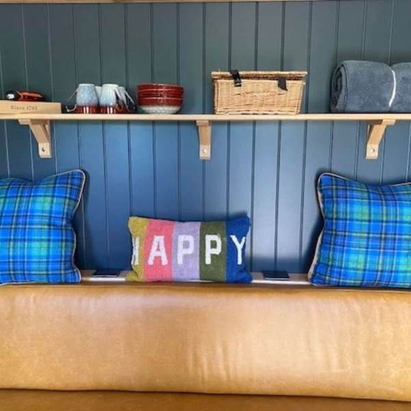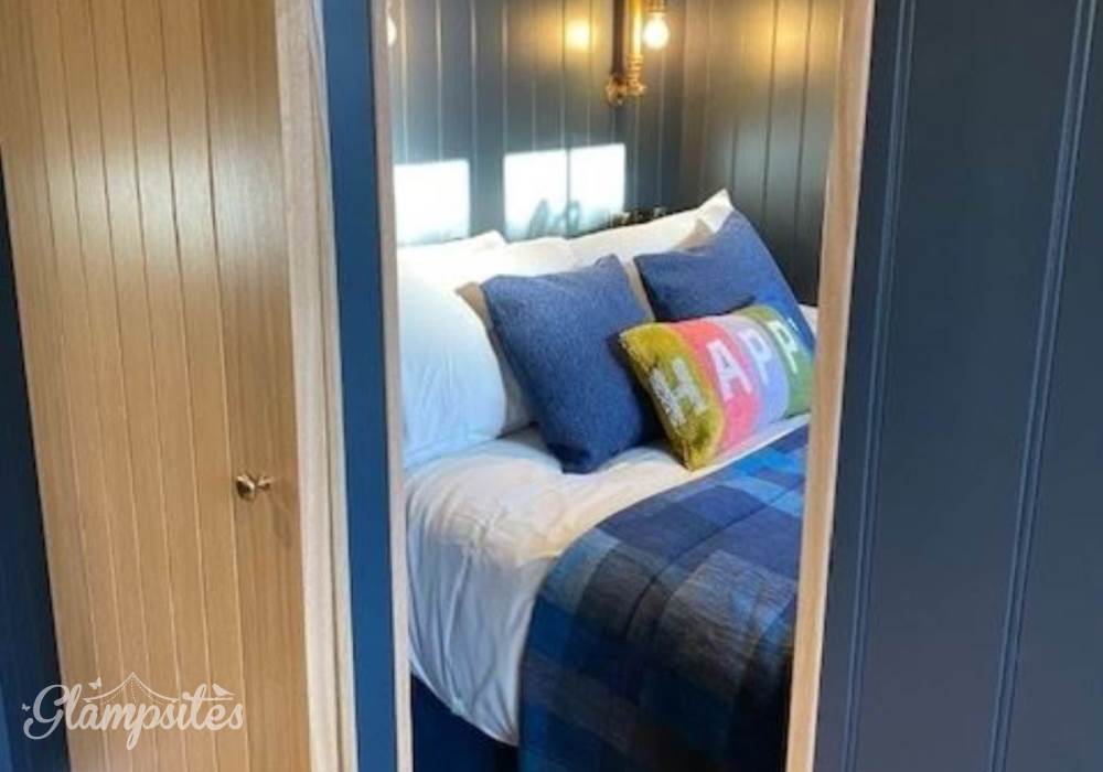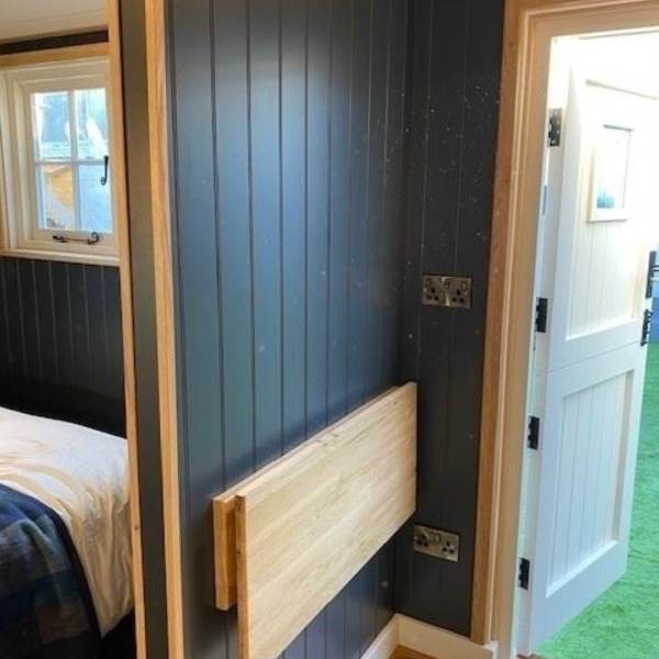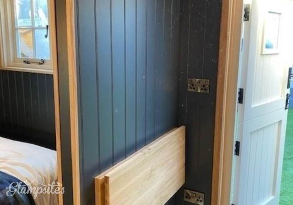 Stylish and well equipped, Shepherds Rest is furnished with a King size bed, side table, single pull leather sofa bed, hand made kitchenette with belfast sink, oak work top, breakfast bar, oven, two ring hob and fridge with small freezer compartment,, en-suite with shower, sink, flushing toilet and heated towel rail and underfloor heating! The outside area is equally well thought out with enclosed garden, picnic table and seating, sun loungers and meadow views. A fire pit with BBQ arm and paella pan is also provided.