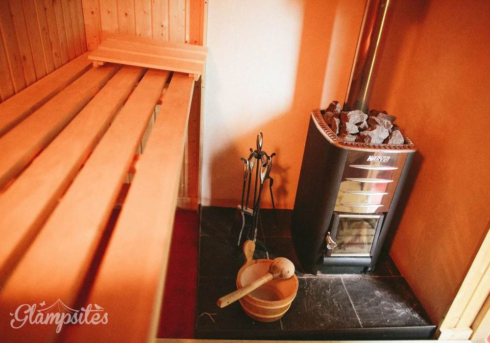 The bathroom hut has a really good hot shower, wash basin & proper toilet as well as the fantastic Scandinavian wood burning sauna that makes a stay here a must - a basket of logs and kindling are provided for this too. After a day out exploring in the National Park, to go back to a sauna or a crackling fire pit under the starry night sky, you really will feel like you've arrived in heaven.