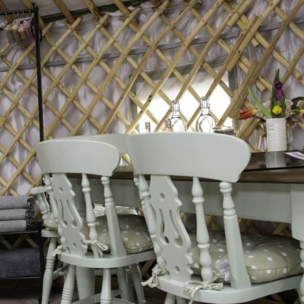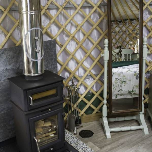 Inside you will find everything you need, all you need to bring on your holiday is your food and drink. Your yurt includes a dining table and chairs for enjoying meals around and playing games at night. A lovely log burner to keep you cosy, one crate of wood is there when you arrive and the fire will be set ready for you to light when your ready. You can purchase extra wood from us at £7.50 a crate or feel free to bring your own.