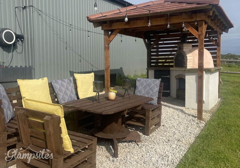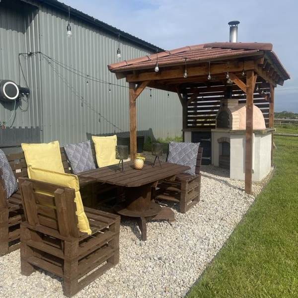 Outside is a fantastic pizza oven and dining area. This is free for you to use during your, wood must be purchased from us at £7.50 a crate, you can also pre-order home made pizza dough and sauce.