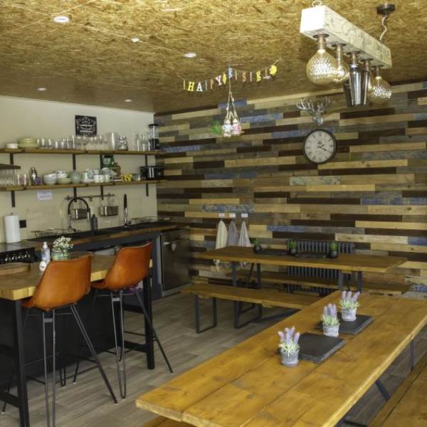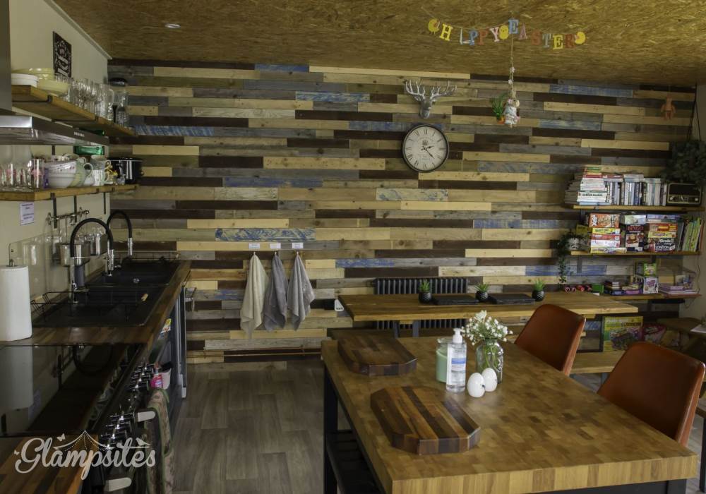 The large communal kitchen is well equipped with everything you could need to cook a Sunday roast or bake with kids on a rainy day. There's plenty of seating for everyone to get together. Book's and games for all ages are in there, and a bluetooth radio to enjoy some music while relaxing. Large patio doors lead to a balcony which over looks the fabulous views.