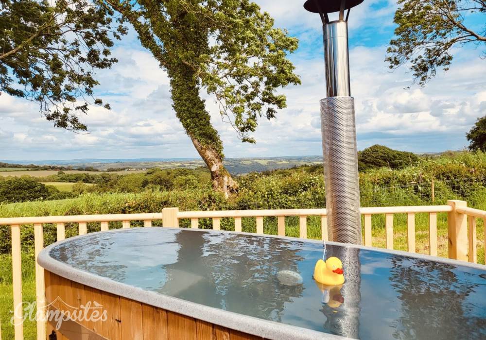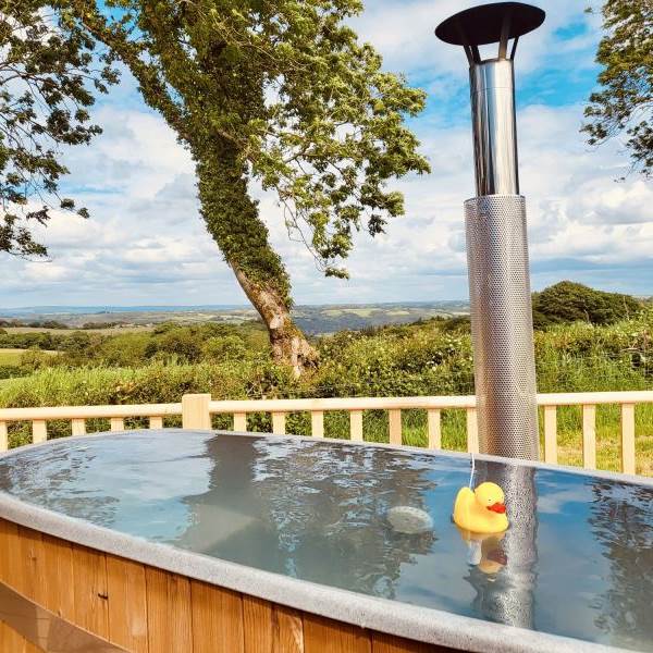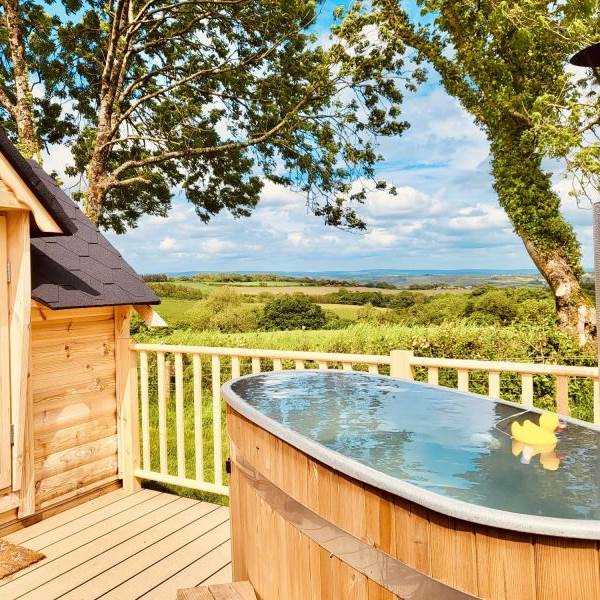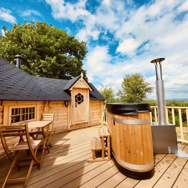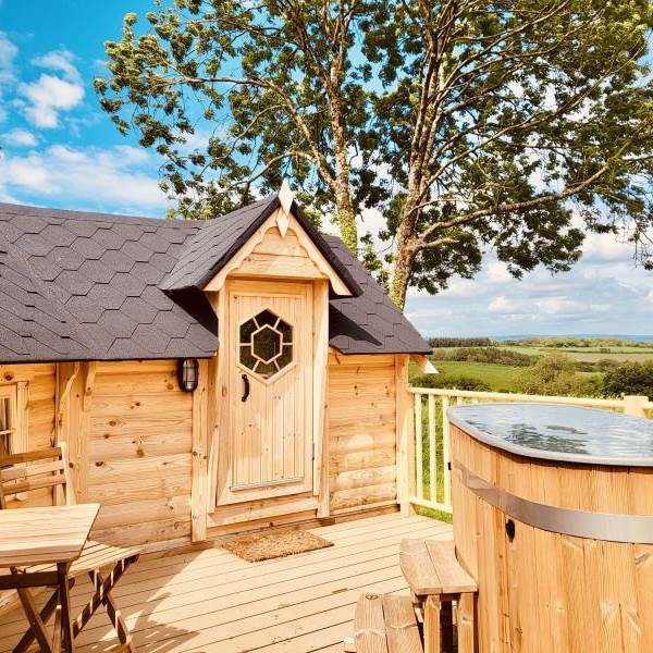 Our Norwegian cabins offer breathtaking 30-mile views over Exmoor, allowing you to wake up to stunning scenery each morning. Enjoy your private patio with outdoor seating and BBQ facilities, perfect for al fresco dining. Unwind in your own wood-fired hot tub under the starry skies, surrounded by the serene sounds of nature. Located in the heart of Devon, our farm provides easy access to local attractions, charming pubs, and scenic walking trails. Immerse yourself in the natural beauty of the area while enjoying the luxurious comfort of Tarka and Midge, and create unforgettable memories in this idyllic countryside setting.