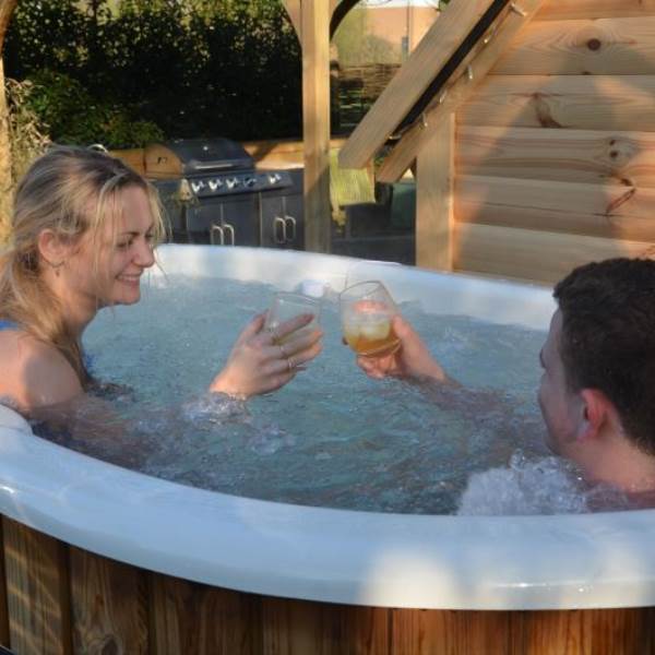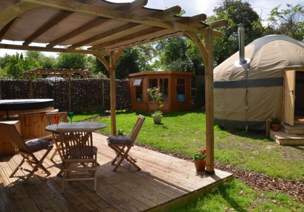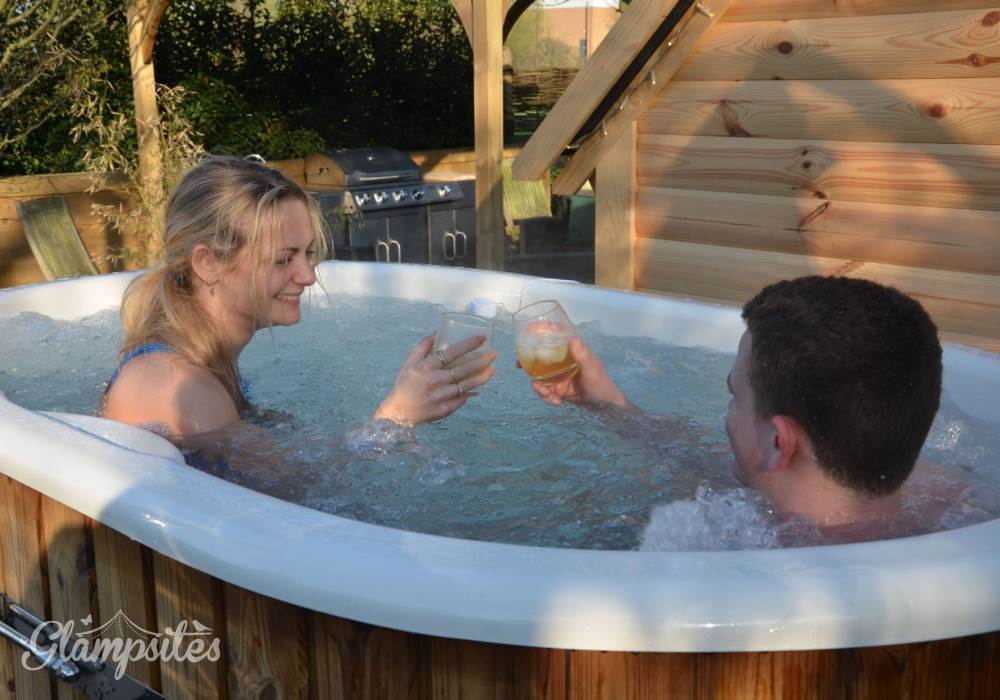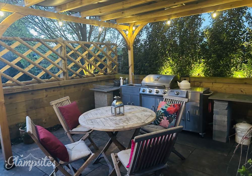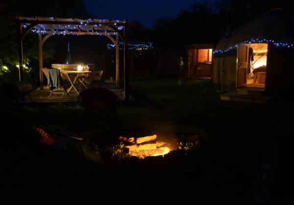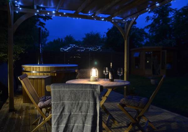 When you book Wild Thyme Cabin you will have your own wood fired hot tub set in its own beautiful glamping garden complete with bubbles, mood lighting and drinks holder! You will have your own table and chairs under a covered pergola complete with fairy lights. And of course your own firepit for optional marshmallow toasting!