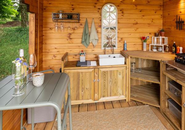 Private, fully equipped outdoor kitchen with gas stove & electric coolbox/fridge