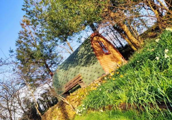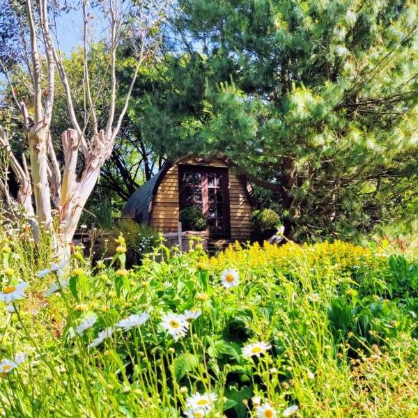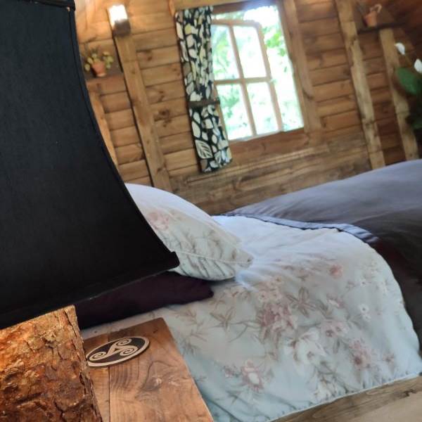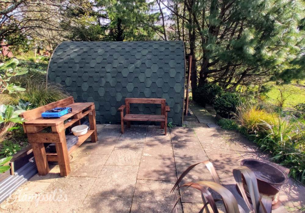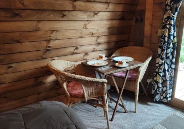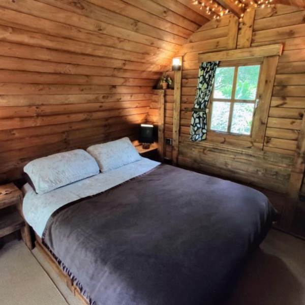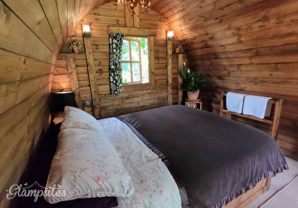 Choose Juniper our Cosy Pod and you will be greeted with a kingsize bed, table and chairs, bespoke furniture and handmade furnishings. You also have an outside gas stove for cooking and a firepit on your private patio. Perfect for a couple's romantic getaway all year round.