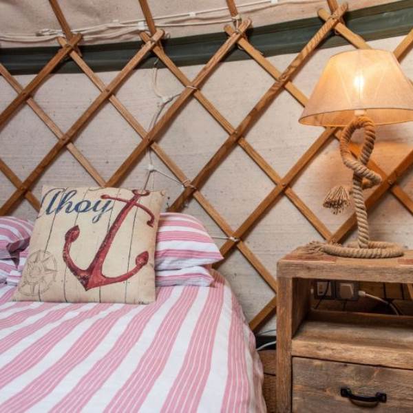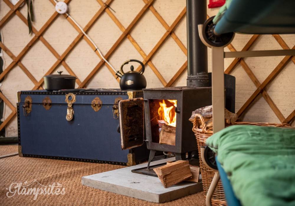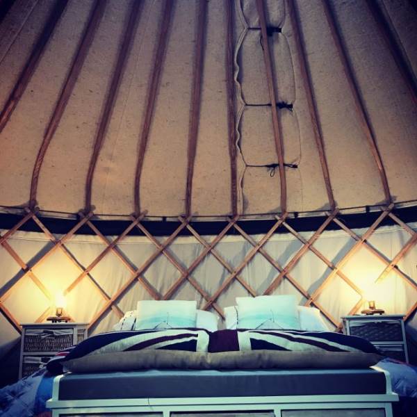 The Mongolian yurts, which have oak doors, are surrounded by a wooden lattice with a window looking up to the stars. Each is fitted with all your creature comforts, guaranteed to make your stay a home-away-from-home. Each yurt has a double bed with a proper mattress and duvet as well as bunk beds, a wood burning stove so you can snuggle up and hunker down, electricity and each has its own undercover cooking and eating area with gas hobs, fridge and its own charcoal BBQ.