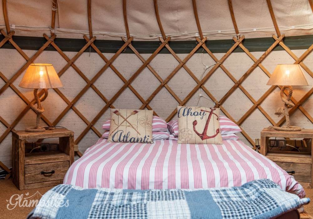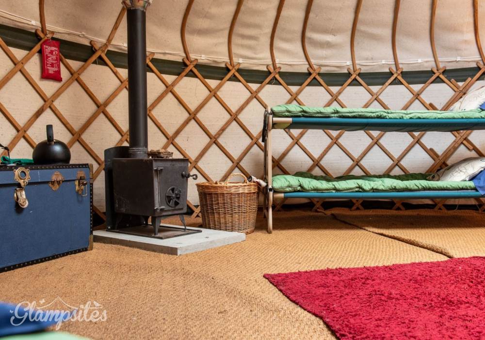 The Mongolian yurts, which have oak doors, are surrounded by a wooden lattice with a window looking up to the stars. Each is fitted with all your creature comforts, guaranteed to make your stay a home-away-from-home. Each yurt has a double bed with a proper mattress and duvet as well as bunk beds, a wood burning stove so you can snuggle up and hunker down, electricity and each has its own undercover cooking and eating area with gas hobs, fridge and its own charcoal BBQ.