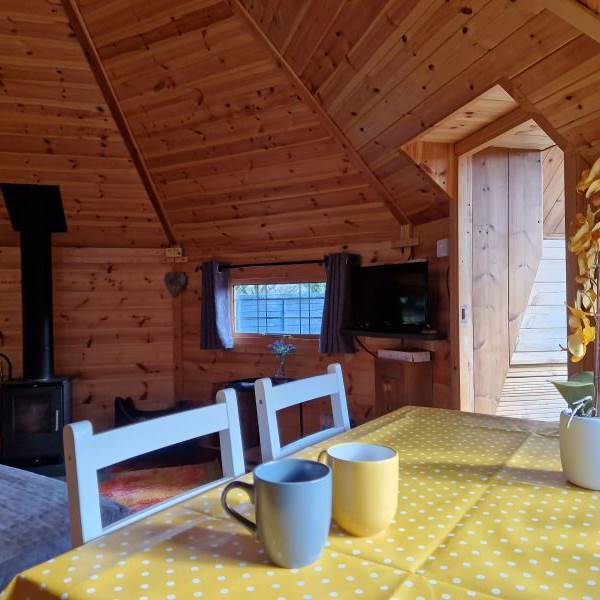 Our cabins are dog-friendly, and have a fenced-in garden where dogs can run and play safely. There is direct access out into our private fields and woodland.