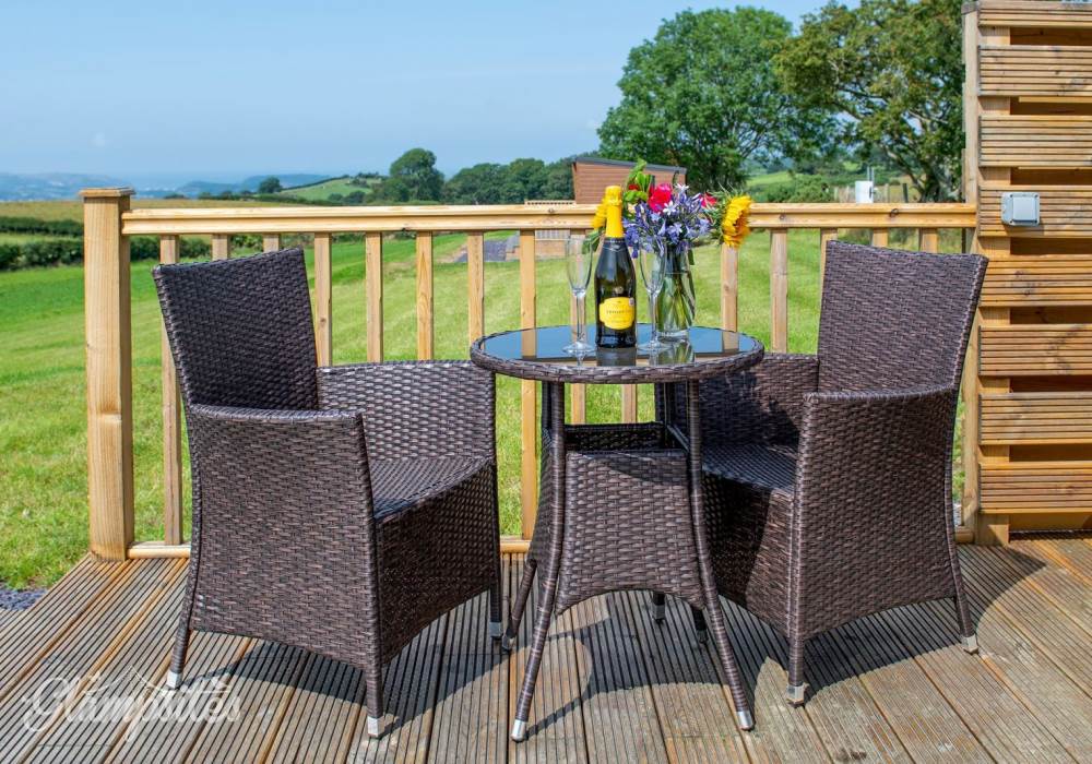 The outside decking area is, perhaps best to utilise when you're still steaming from the hot tub, wrapped in your fluffy dressing gown, and pouring a tasty aperitif against the Welsh sunset...