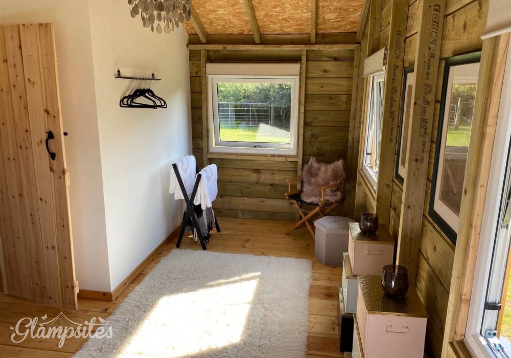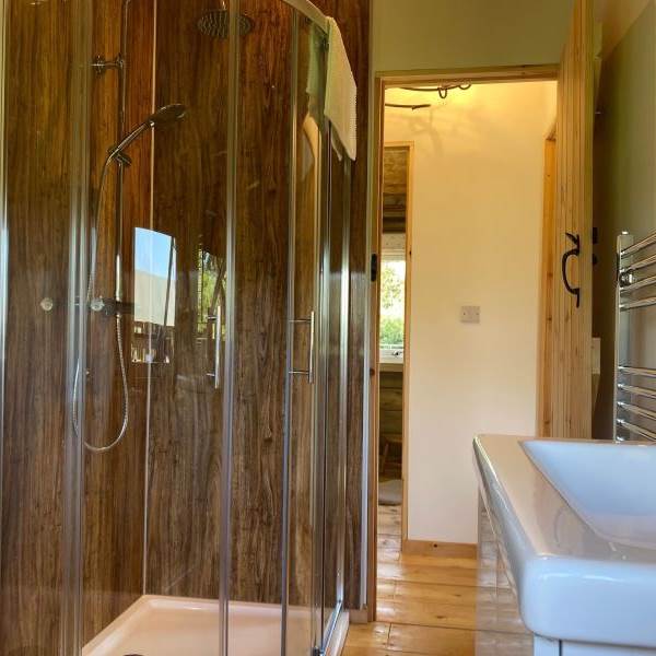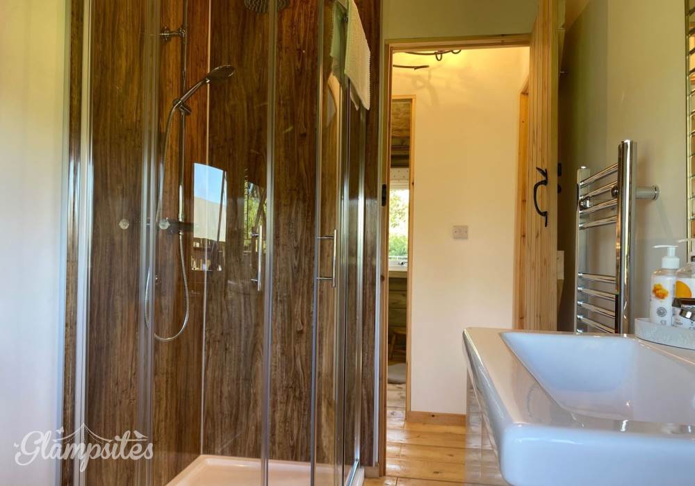 A spacious master bedroom with double bed and additional space for a travel cot or trundle bed. The second bedroom is set up with a bunk beds making this ideal for younger children (under the age of 13). A modern shower room with flushing loo and wash basin only completes the luxury glamping experience which awaits you.