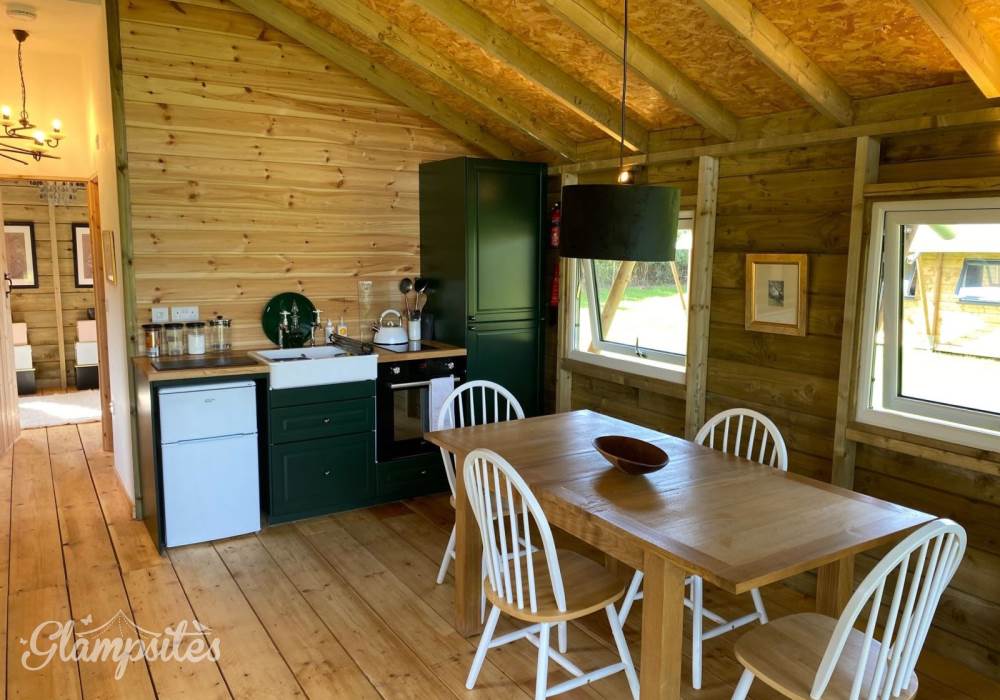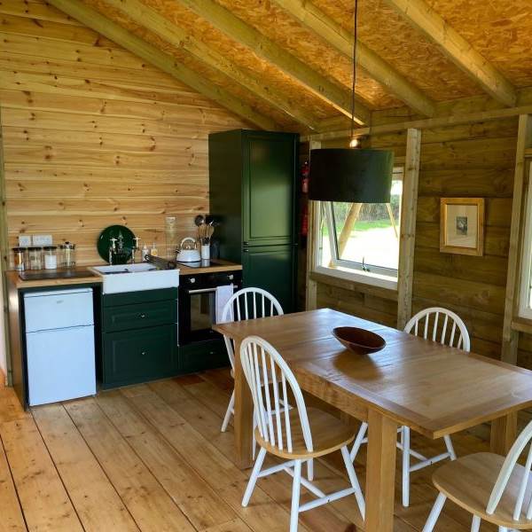 Built in 2022, this attractively furnished and well appointed bespoke built lodge offers an open plan family living area with a modern kitchen with oven, hob and fridge. With a farmhouse table and comfortable seating everyone can come together and enjoy the moment. Full length patio doors open up to a raised decking area with ample seating for the whole family to sit and soak up the open views and enjoy the natural and relaxed rural setting.