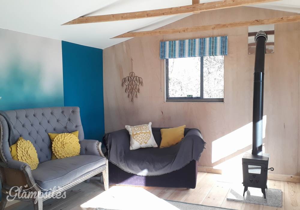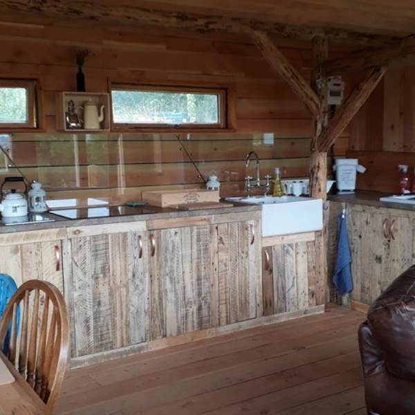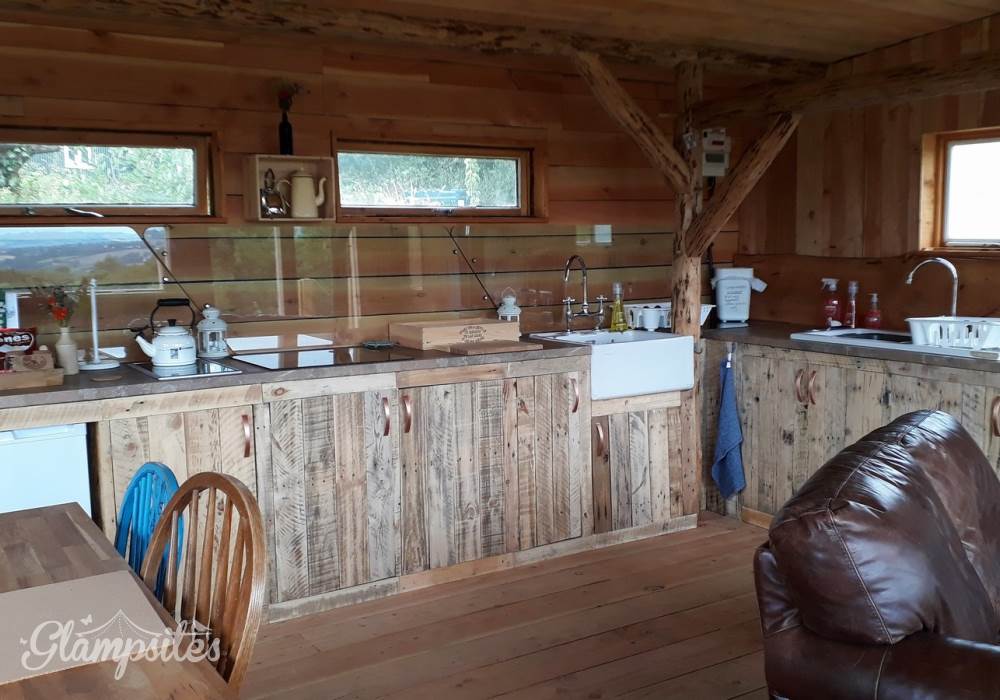 Our beautiful, well-equipped kitchen cabin takes in views & has space for cooking, eating & relaxing. There's also a sofa, woodburner & lots of indoor & outdoor activities, books & colouring supplies.