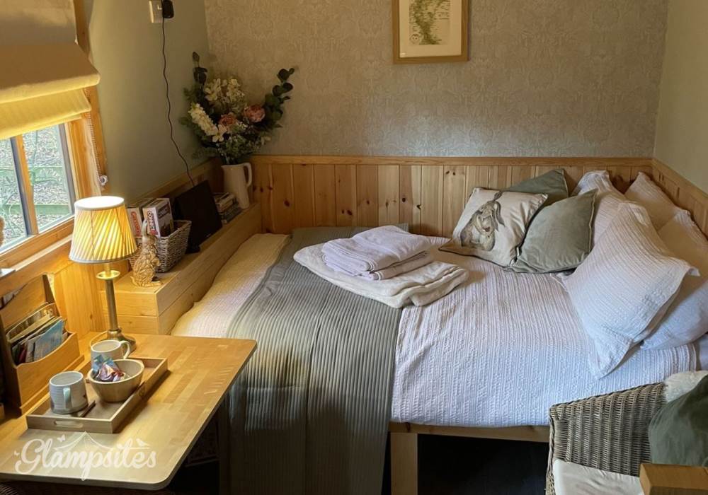 Our new bespoke built shepherd huts are a Chic cosy wooden hut alongside a Contemporary tin hut these are very secluded away from our glamping pods. Both huts are available for 1-night stays or more and any day is a check in day.