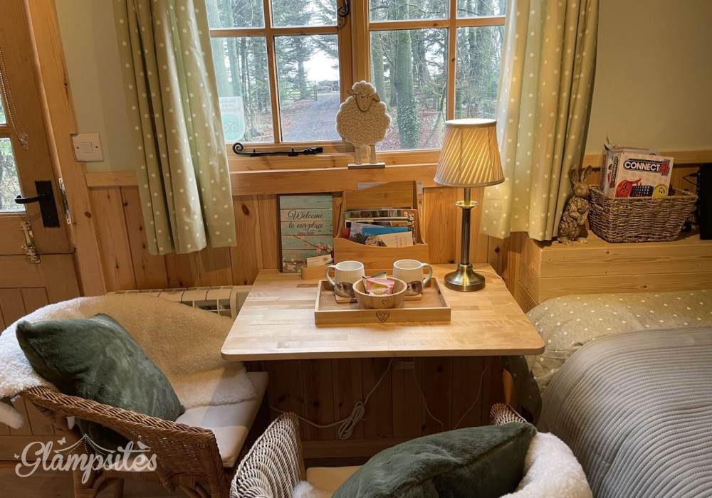 Accommodating 2 adults. Equipped with a double bed, comfy dining table & chairs, the kitchen area is equipped with a fridge, microwave, kettle, toaster, portable electric hob, all cooking utensils & crockery. Ensuite bathrooms with toilet, sink and walk-in showers & hairdryer. We have also included games and books for light entertainment.