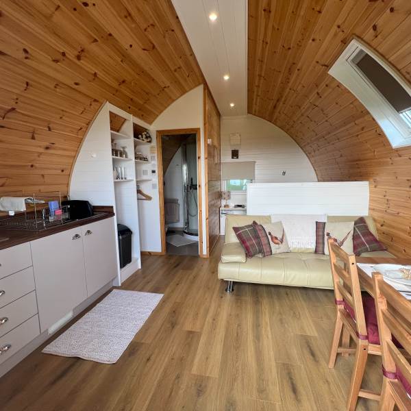 This pod provides a cosy and intimate setting for guests to enjoy the stunning vistas. Whether relaxing inside the pod, sitting outdoors, or lounging by the fire pit, every angle offers a unique and mesmerizing view. The clear star-filled nights add a touch of magic to the already enchanting atmosphere.