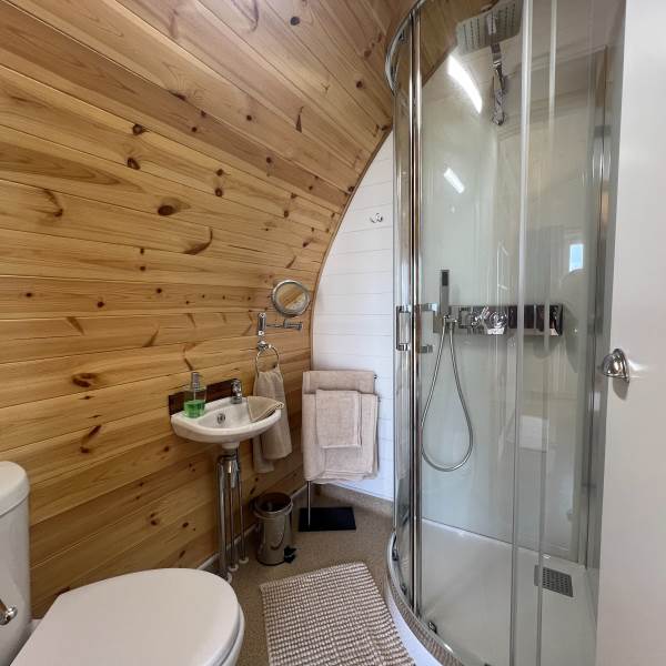 Pheasants Roost features an ensuite shower room with modern amenities, including an enclosed shower, toilet, hand basin, two-way mirror with LED lighting, shower mat, hand soap, and toilet rolls. The towel pack provided includes 1 bath towel, hand towels, and a flannel per person, ensuring guests have everything they need for a comfortable stay. For additional convenience, there's a cosy sofa bed for parties of more than 2 guests (ideally for 1 adult or 2 children).