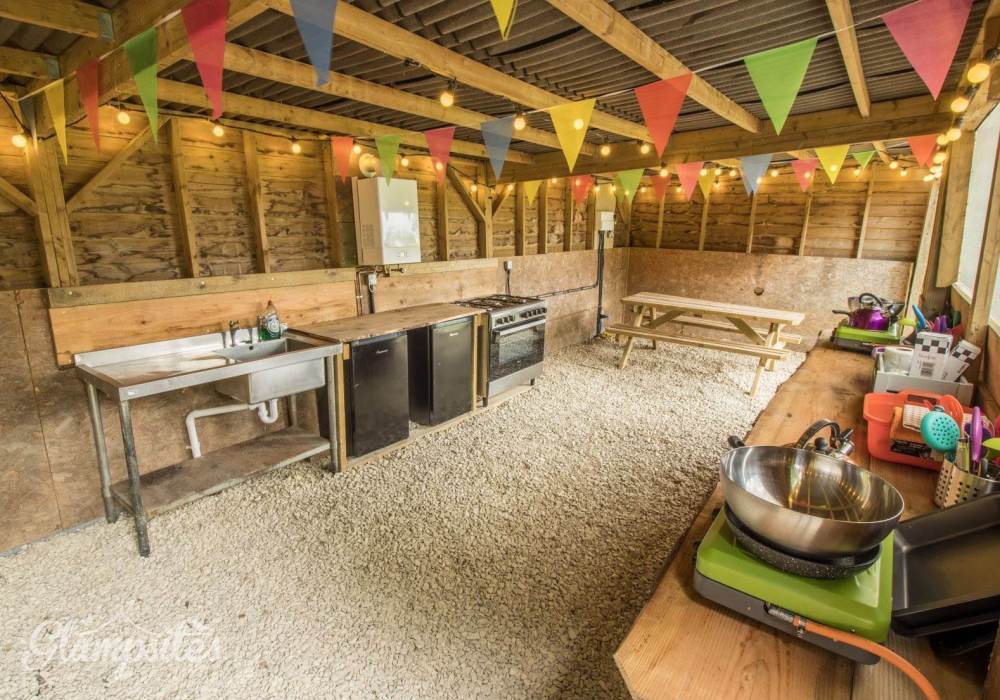 In the kitchen area you get your own work station complete with plates, cups, pots, pans cutlery etc, camping stove, fridge, storage box and picnic table, however there is a conventional communal range cooker and barbeque if the camping stoves do not take your fancy.