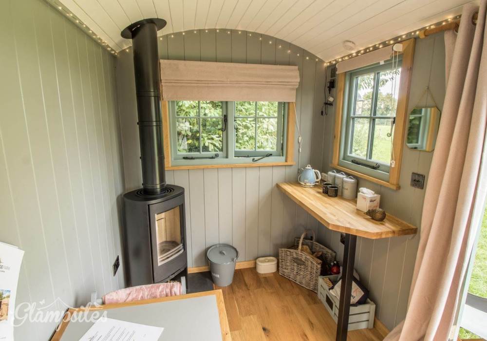 The shepherds hut sleeps 2 with one double bed complete with thick, warm, duvets, pillows and linen. We do have travel cots available for younger guests. Outside your hut there is a lovely area with 2 directors chairs to sit and enjoy a glass of wine as well as a picnic table, your own barbeque and your own fire pit to toast those marshmallows over.